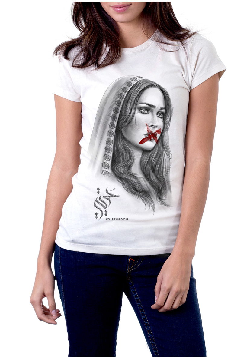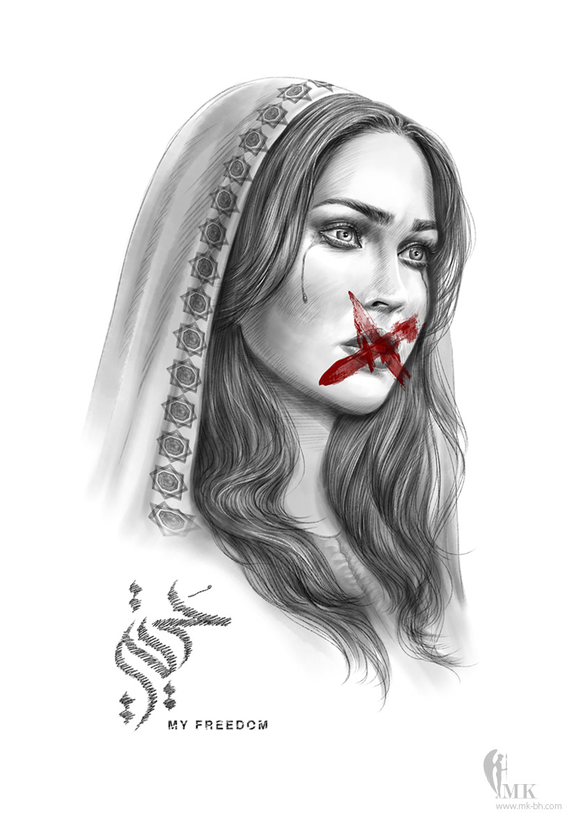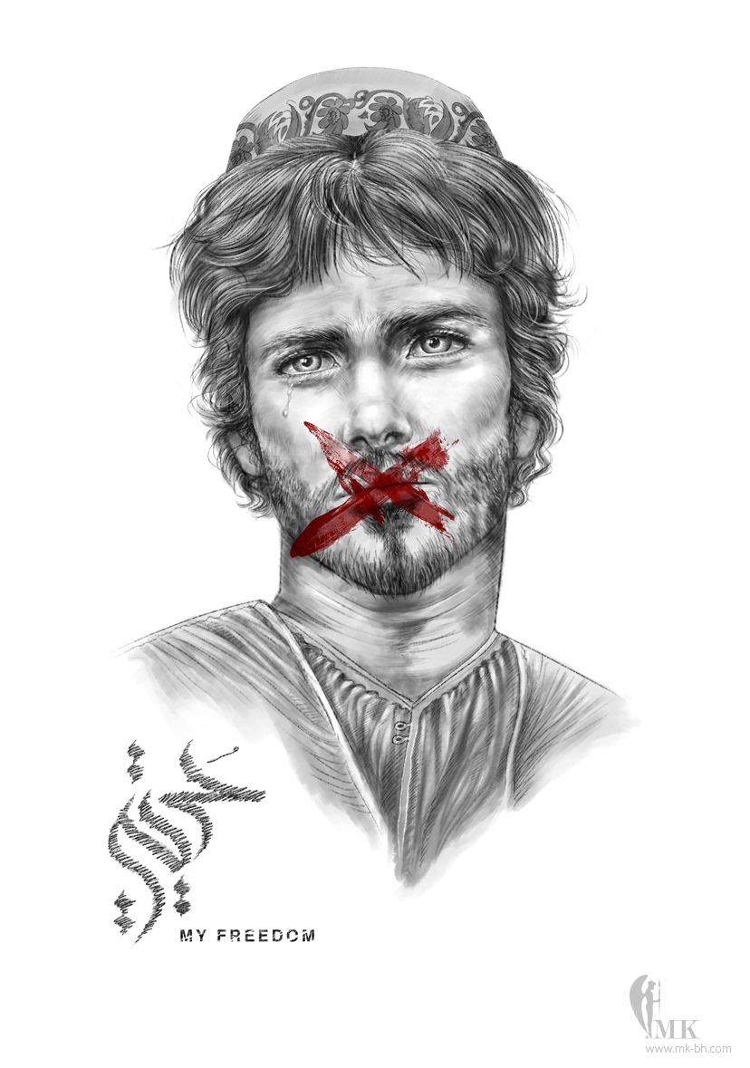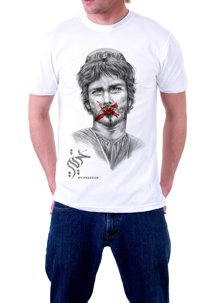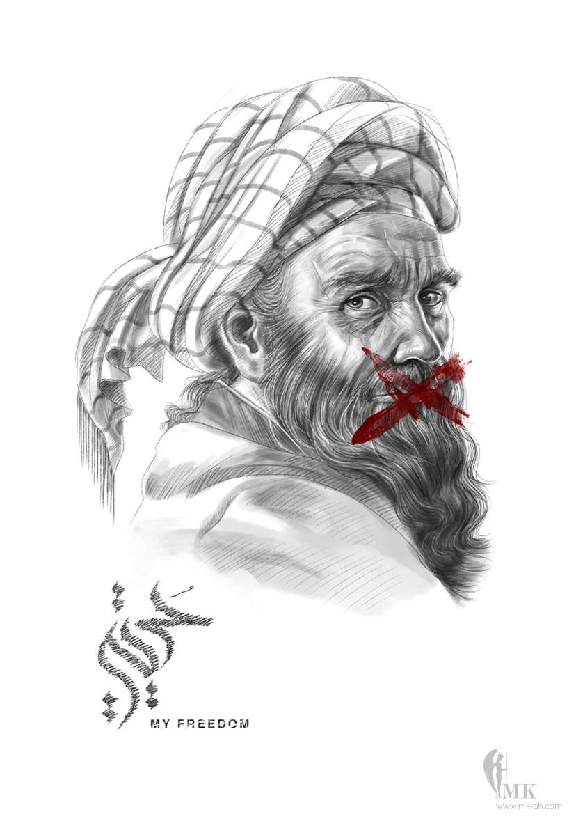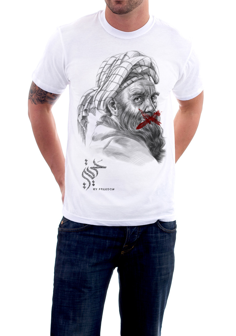 T-shirt drawing done for a fashion show in al ali center... special thank you to my friend for calligraphy shape one-bh.com/ The concept depicts freedom of speech. mk-bh.com